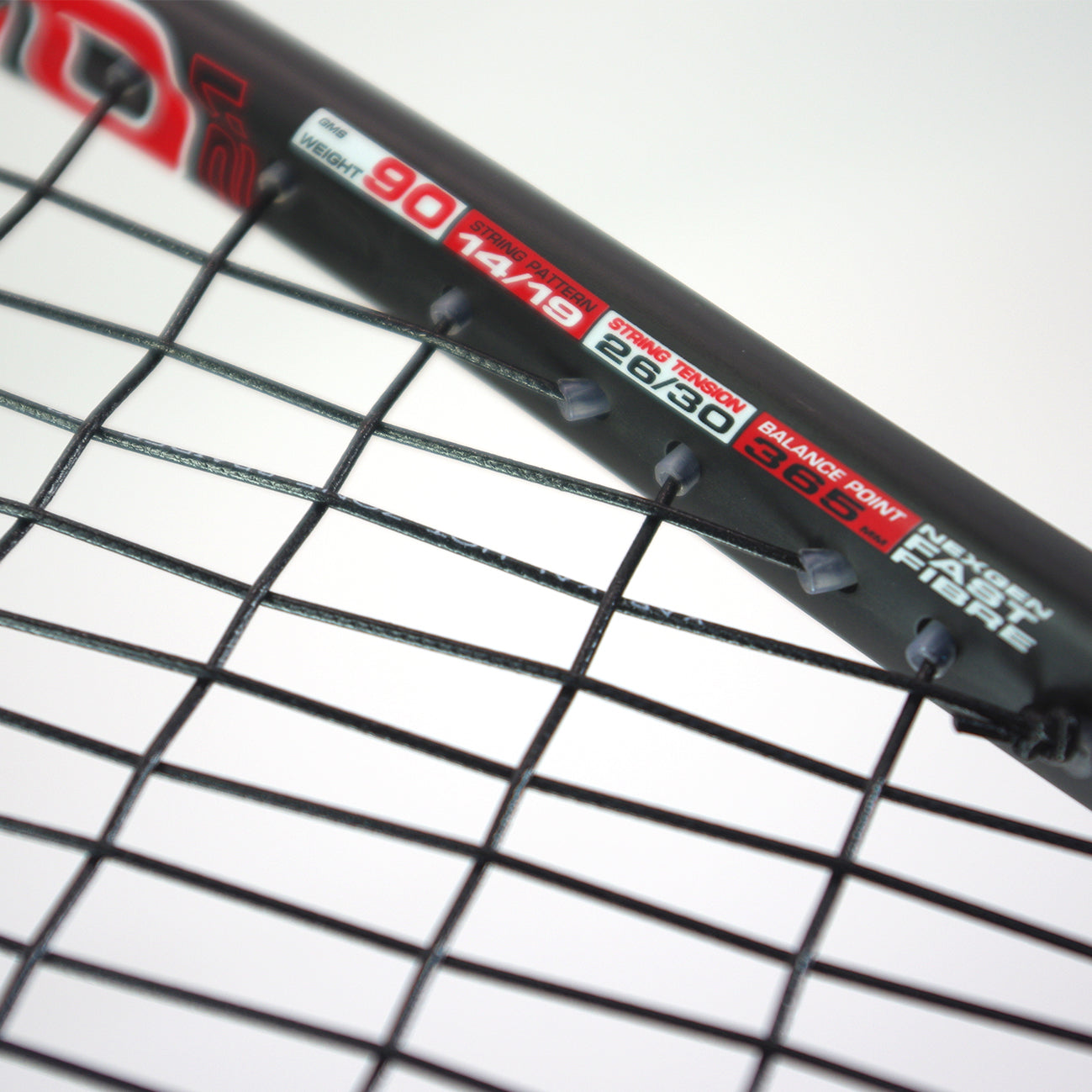 La 2.1 se ha actualizado con nuevas cuerdas, calcomanías y un nuevo color de empuñadura para una apariencia clásica. La incorporación de nuestro Hot Zone Braided Black le da a la estética un aspecto vanguardista, con calcomanías visibles a través de un juego de ojales transparentes. La popularísima SN-90 está fabricada con gel de carbono NEXGEN Fast Fiber. La incorporación de NEXGEN Fast Fiber a esta raqueta, ya de por sí superligera, permite una mayor velocidad de cabeza y una potencia aún mayor, además de que el marco recupera su forma un 15 % más rápido tras el golpe. Esto se traduce en mayor potencia con menos esfuerzo y una jugabilidad considerablemente mejorada. Todas las raquetas Karakal de gama alta incluyen una funda ecológica Full Bag 100 % reciclable, fabricada con un suave tejido polar ecológico. Tecnologías Karakal presentes en la raqueta de squash Karakal SN-90ff 2.1 Karakal NEXGEN Fast Fiber Graphite Tecnología Karakal Click-Bridge Antivibrador integrado Karakal Mango octogonal de grafito Ojal Crystal Clear Cuerda trenzada Karakal Hot Zone 120 Karakal No 1 PU Super Grip